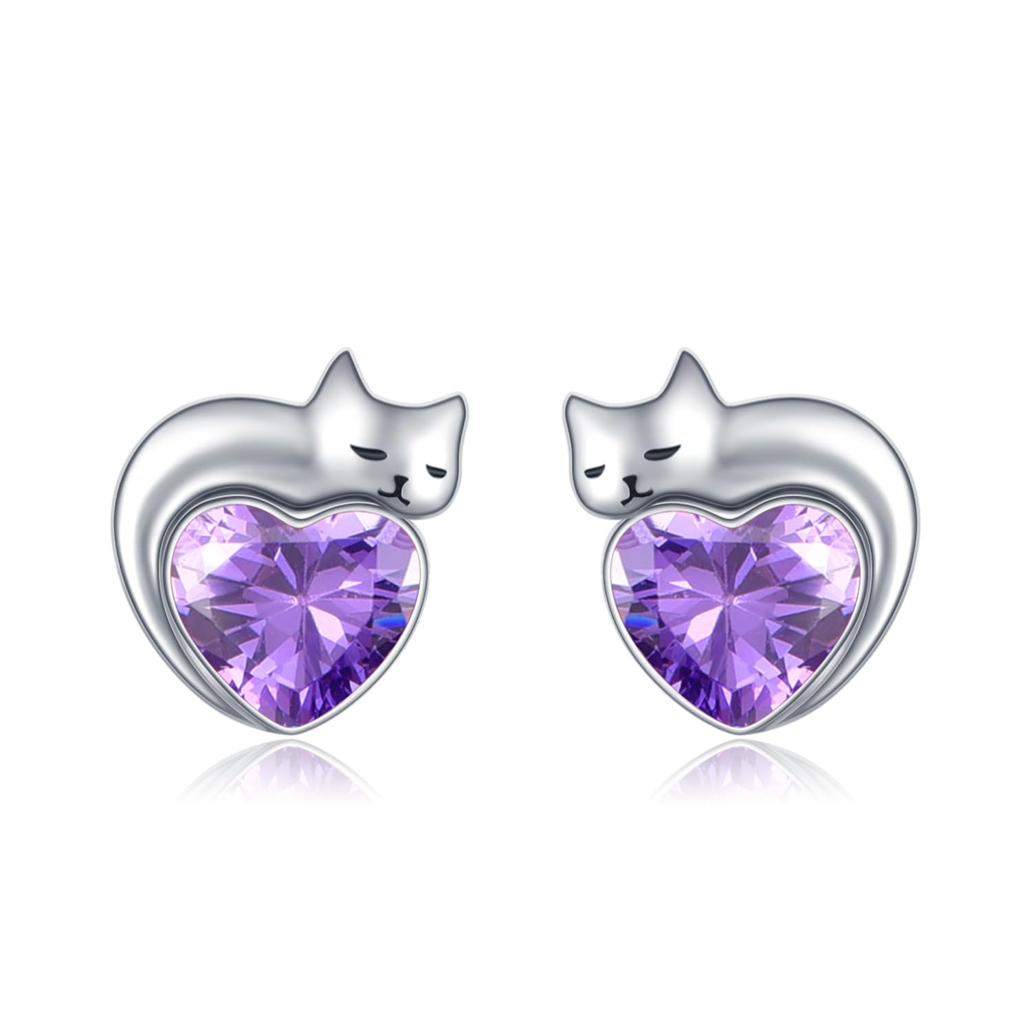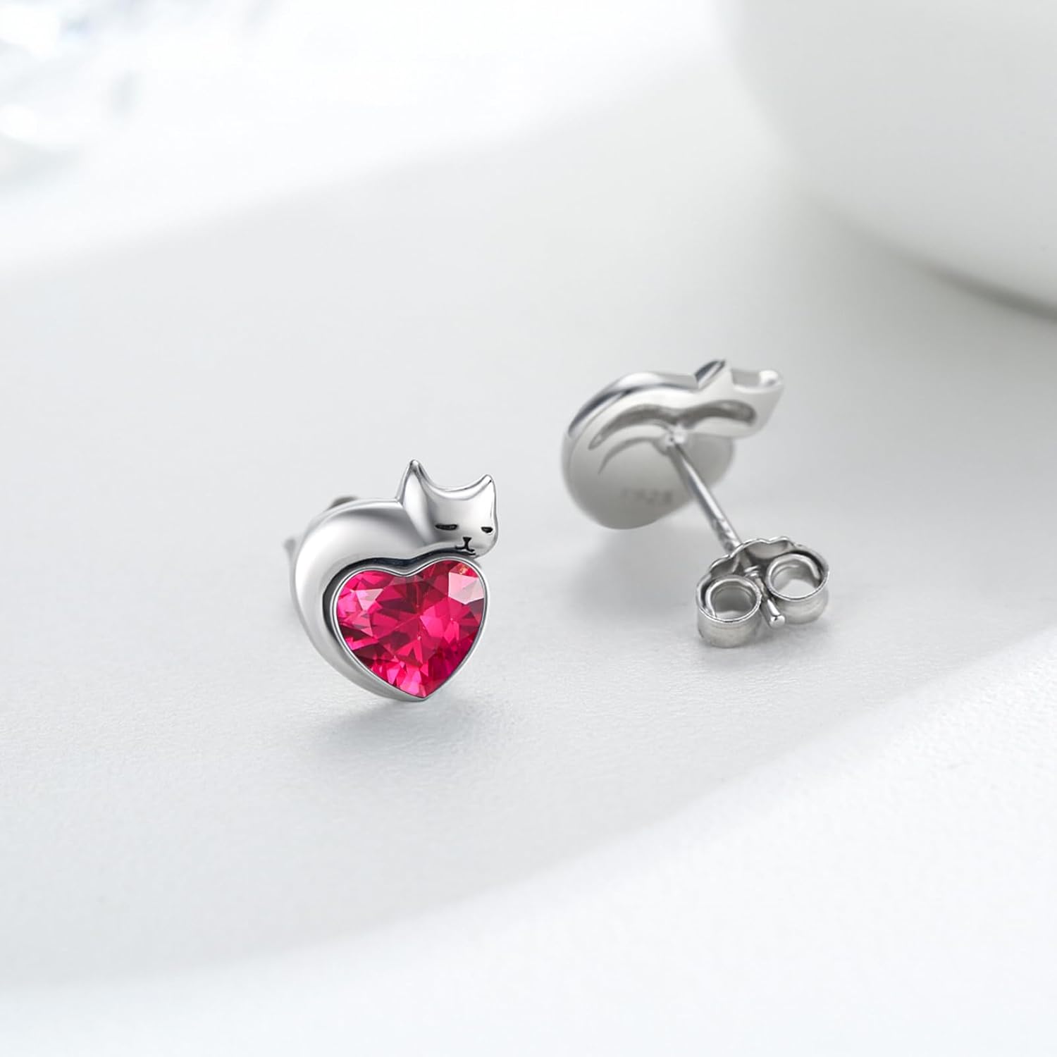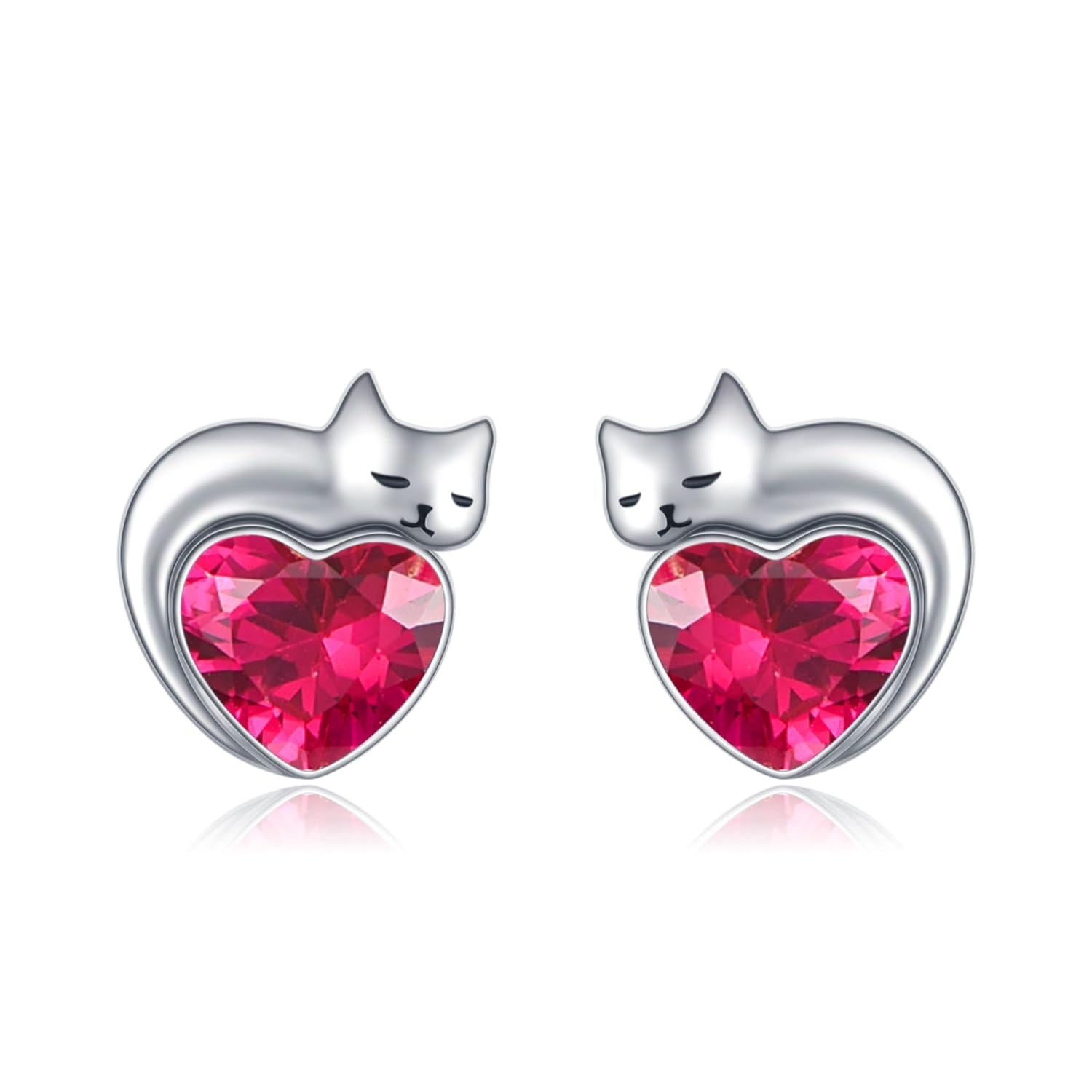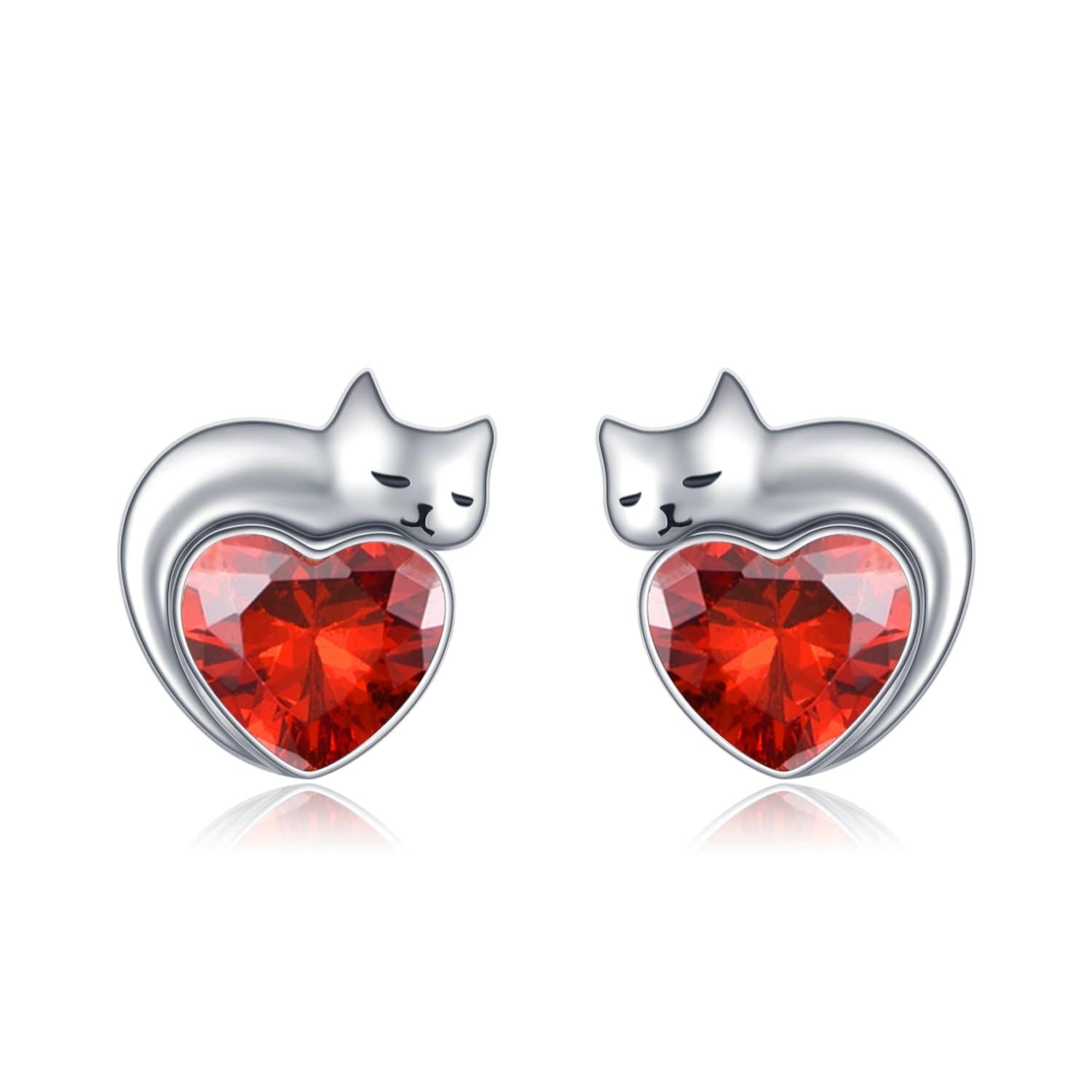 A silhouette of whimsical protection. These Cat Stud Earrings reimagines a timeless symbol of freedom and luck, centering on a vibrant January Birthstone that represents passion and inner happiness.